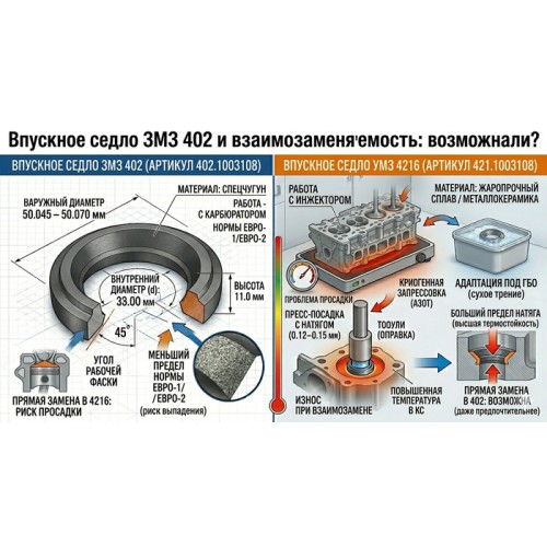 Сравнение впускных сёдел 402 и 4216: можно ли взаимозаменять?