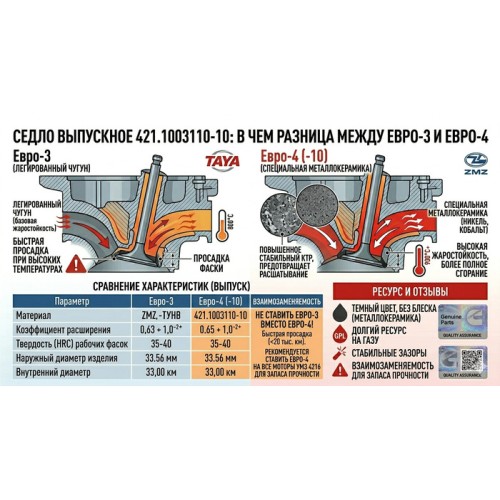 Теоретически, седло от Евро-3 встанет в посадочное место Евро-4, так как геометрические размеры идентичны. Однако на практике это приведет к быстрой просадке клапана. Менее жаростойкий материал старого образца начнет «плыть» уже через 15-20 тысяч километров.